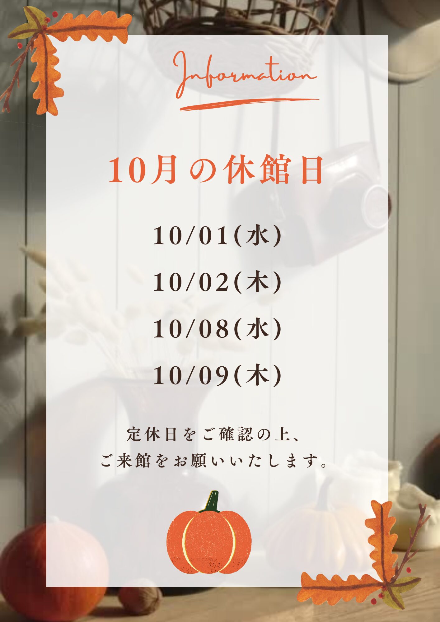 10月 休館日のお知らせ